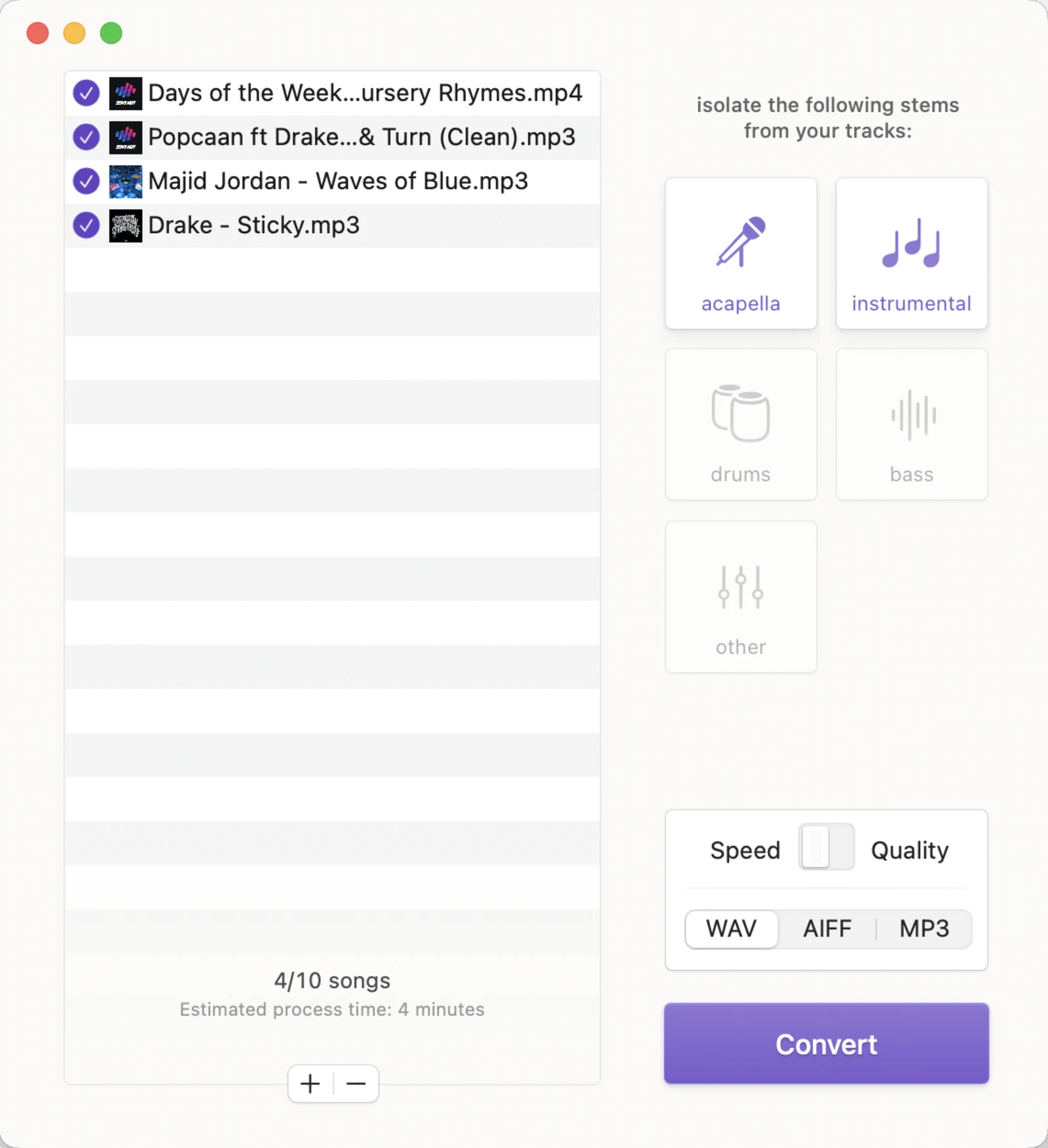 Stemverter 3 has a brand new AI engine, native 24-bit audio processing, AIFF output, and macOS Finder integration.